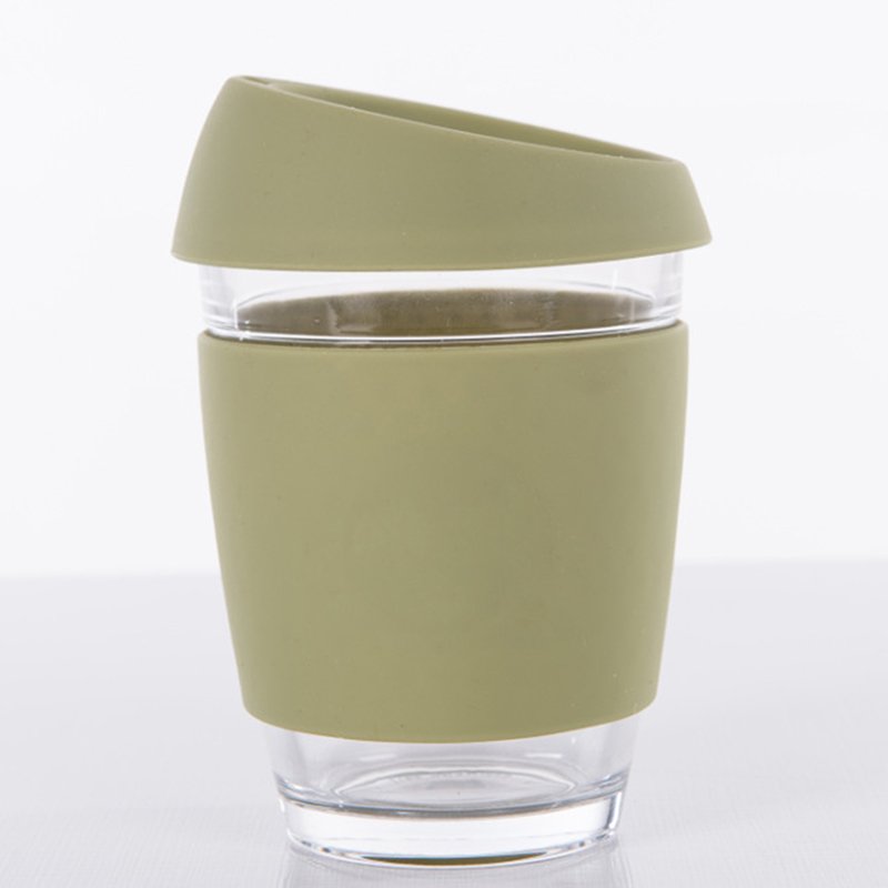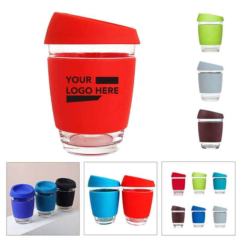 This glass cup comes with a silicone sleeve and lid, available in colors like red, green, and brown. The silicone sleeve prevents scalding and slipping, while the lid ensures leak – proofness. Featuring a “YOUR LOGO HERE” zone for customization, it’s perfect for carrying coffee or tea on the go, combining practicality with brand – friendly design.