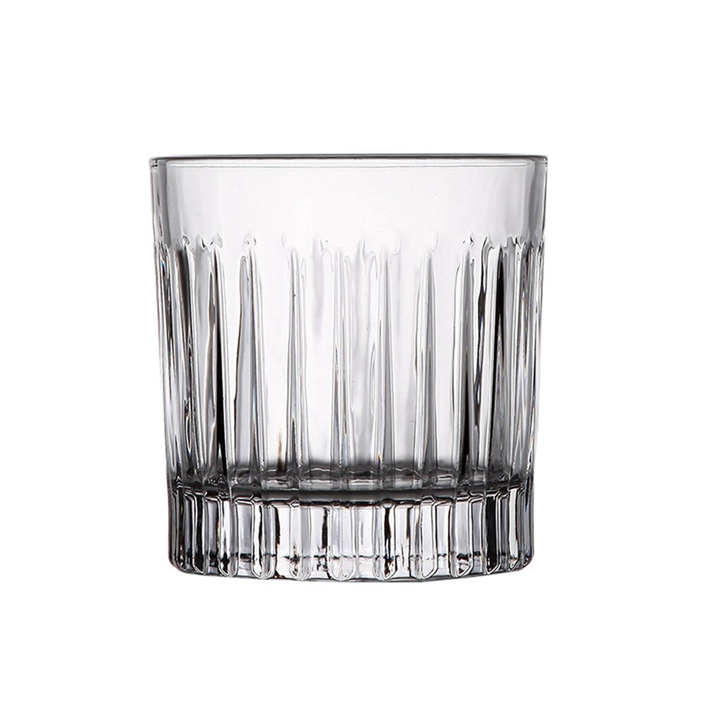 This crystal – clear whiskey glass features elegant vertical ridges, showcasing the amber hue of whiskey beautifully. With a sturdy build and comfortable grip, it’s ideal for savoring whiskey at home or in bars. The refined design adds a touch of sophistication, blending practicality with aesthetic appeal to elevate the tasting experience for enthusiasts.